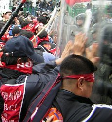 On Saturday the 17th, police arrested 900 protesters during widespread protests on the streets of Hong Kong led by farmers, peasants and union members. At the end of the confrontation, around 1000-1500 other activists, from Korean groups and Via Campesina, as well as individuals from Hong Kong, other parts of Asia the US, and Europe were involved in an all night standoff with police who had surrounded them. They sang, danced, and chanted, while police fired more tear gas and threatened them with rubber bullets.