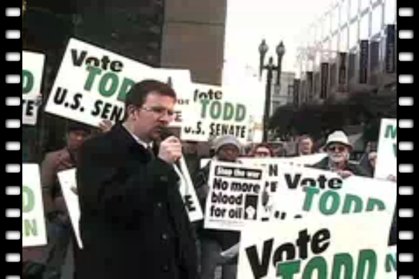 On Dec. 15th, Todd Chretien announced he would seek the Green Party nomination for U.S. Senate to challenge the incumbent, Diane Feinstein, in November, 2006. His speech is in three parts, each about three minutes long. 8MB, 6MB, and 7MB.