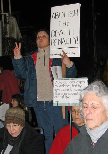 San Quentin Prison (January 17, 2006) – About 400 people gathered at the gates of San Quentin Prison last night to protest the execution of 76-year-old inmate Clarence Ray Allen shortly past midnight this morning.