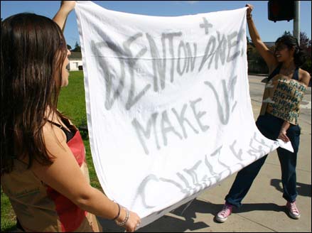 On Wed, March 1, students at UC Santa Cruz engaged in a creative "clothing-optional" protest against collegiate apparel produced by sweatshop labor. The protest was also against alleged comments by UCSC Chancellor Denice Denton that 'no one cares about sweatshops.' The students, associated with United Students Against Sweatshops (USAS) and the Student and Worker Coalition for Justice (SWCJ), are part of a national campaign to urge colleges to sign on to a designated suppliers program that ensures dignified labor conditions.