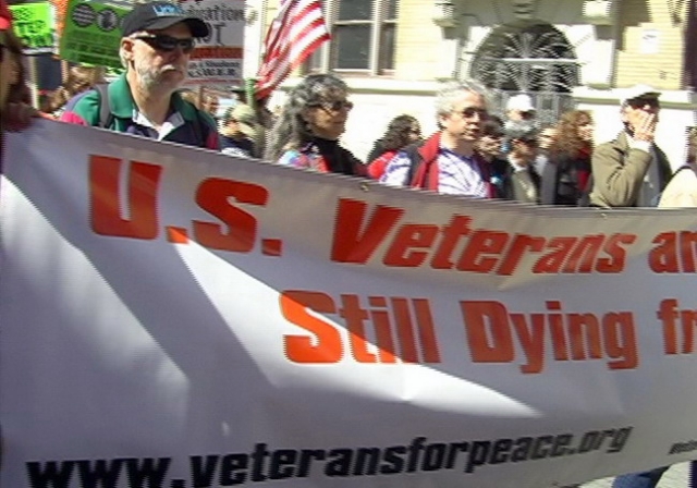 At the Los Angeles demonstration, which began at 12 noon at Hollywood and Vine, speakers included Academy Award winner, Paul Haggis, Vietnam War Veteran Ron Kovic, and Golden Globe nominated actress Maria Bello.