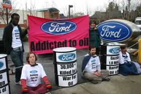 The Raging Grannies, RAN, Global Exchange, the Ruckus Society, CODEPINK, Veterans for Peace, and San Mateo Peace Action Team Up to Tell Ford that Urgent Action is Needed to Break America's Oil Addiction!