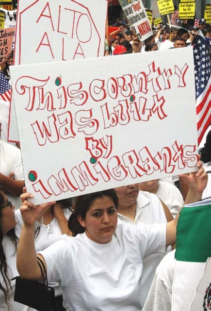 Today's demonstration was the largest of many immigrant rights demonstrations that have taken place this month. It is an uprising from the people against the reactionary Sensenbrenner Bill that passed in the House of Representatives. The bill criminalizes immigrants and those who support them. The demonstrations began with 50,000 in Washington DC on March 7, 500,000 in Chicago on March 10 (the largest demonstration ever in Chicago history), and tens of thousands more in the last week in Milwaukee, Phoenix, Atlanta and other cities. In build up for today's demonstrations, thousands of high school students walked out of class and marched yesterday in Los Angeles. Yesterday in Georgia, tens of thousands of immigrant workers refused to show up at their jobs in a work stoppage protesting regressive legislation passed by the Georgia State Legislature. These demonstrations reflect a tremendous upsurge in the immigrant community.