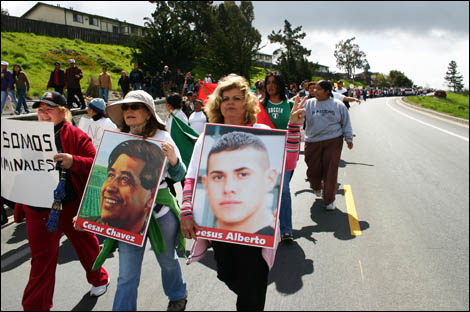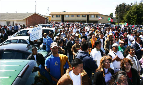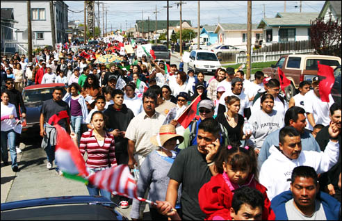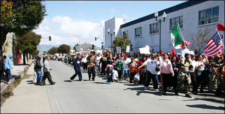 On March 25th, between 2,500 to 3,000 members of the Watsonville community joined Gold Star Families for Peace member Fernando Suarez del Solar, and Iraq War resister Pablo Paredes for the 5 mile Watsonville leg of their 241 mile peace march from Tijuana to the Mission District in San Francisco. Along with chants for peace, the marchers were taking a stand against the draconian anti-immigrant bill HR4437. Some say the march was the largest in Watsonville's history.
