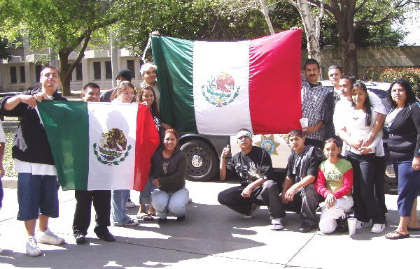 Students continued to walkout of school and head for downtown Fresno today, in protest of HR 4437, the proposed immigration legislation in Congress. They have been marching to Fresno City Hall since Monday when over 500 students marched downtown and held a rally. On Tuesday the official police estimate of the crowd at City Hall was 2,000, with community activists estimating the crowd was as large as 6,000.