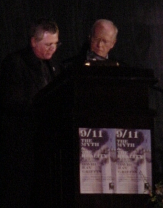 At one point in his address, Dr. Griffin remarked that the mainstream media seems to be showing greater interest in his theories that controlled demolition was used in the destruction of New York World Trade Center buildings, that the government failed to adequately investigate and explain the terror incidents of that day, and that those events were used as a pretext to go to war in Afghanistan and Iraq.