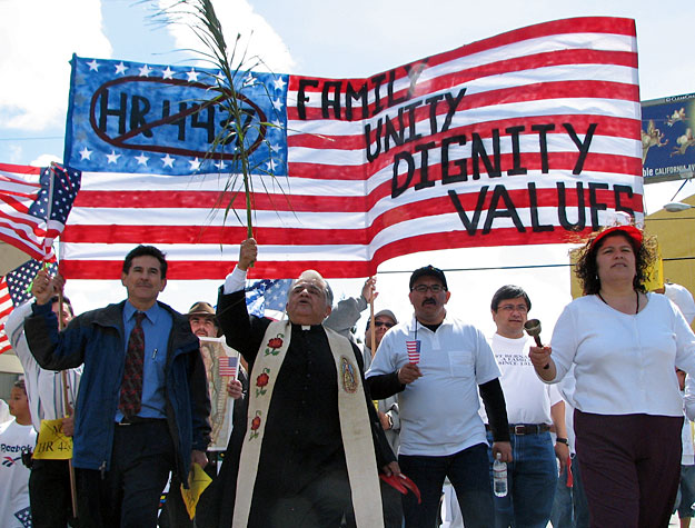 Oakland, California (April 10, 2006) – Nearly five thousand people marched and rallied this morning in Oakland for immigrant rights. What began as a relatively small group at 100th avenue this morning, swelled to thousands as clusters of immigrant workers, families, youth, and supporters awaited the march all along International Boulevard. The eight mile march ended with a rally outside the Oakland Federal Building. This was only one of hundreds of actions today being held under the “National Day of Action for Immigrant Justice” banner (http://www.april10.org).