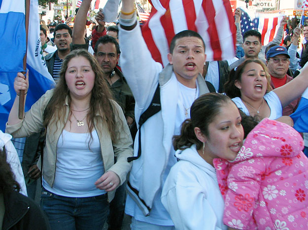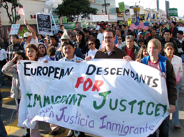 San Francisco, California (April 10, 2006) – About five thousand people marched this evening through San Francisco’s Mission District in support of immigrant rights. From 16th Street to 24th Street, thousands of immigrant workers, families, youth, and supporters marched down the middle of Mission Street. This was only one of hundreds of actions today being held under the “National Day of Action for Immigrant Justice” banner (http://www.april10.org).