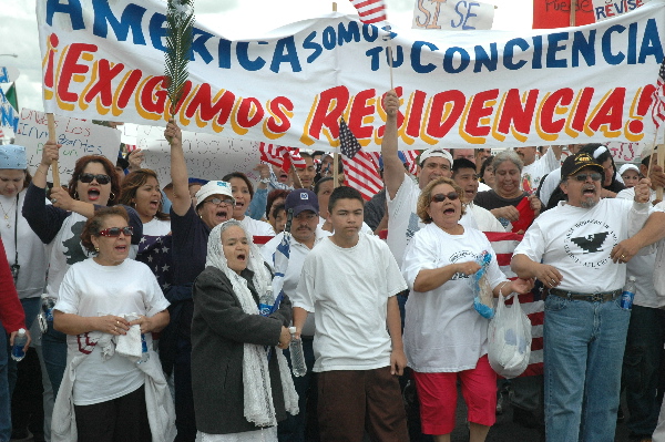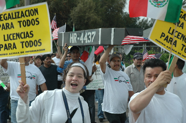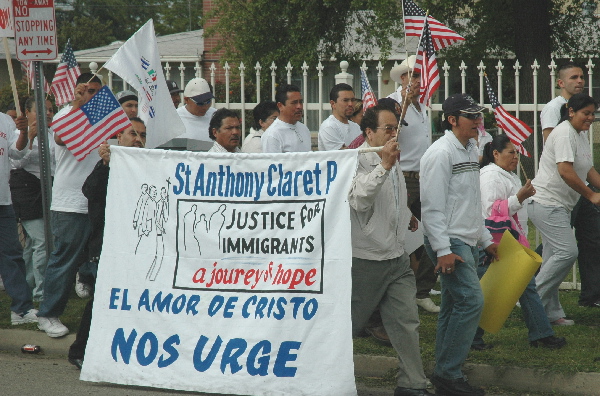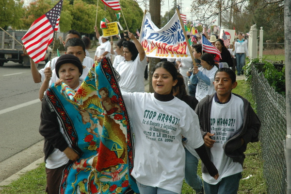 Over 10,000 immigration rights supporters marched to downtown Fresno today (April 10, 2006). The march started at Saint Anthony Claret church and ended at City Hall. Along the way thousands of immigrants and their allies joined the march, ultimately making it the largest political march in Fresno’s history.