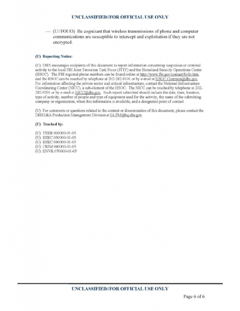 Homeland Security Memo On Environmental Activists