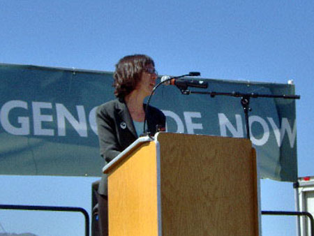 A broad range of speakers informed the crowd and urged people to take the energy of the day forward and create greater momentum for stopping the ongoing genocide in Darfur. Congresswoman Lynn Woolsey, 6th district, CA was the first to speak.