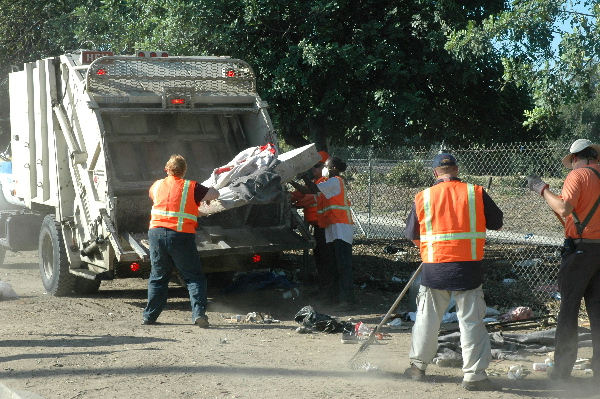 Fresno police Capt. Greg Garner said Thursday's cleanup operation, which was conducted by the city's Community Sanitation Department, covered the area roughly bounded by G, E and Santa Clara streets and Ventura Avenue, and also an area on G Street underneath Highway 41. The land is owned by the California Department of Transportation.