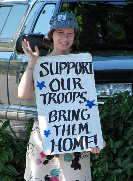 The bridge overlooks the Port of Olympia where community members made international news last month by staging a ten day blockade of the Army’s 3rd Brigade Stryker combat vehicles in an attempt to stop them from shipping out to Iraq. The community is now focusing its attention on supporting Lt. Watada who was attached to this same Stryker brigade.