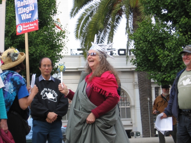 The program was MC'd by Veteran Ed Holmes (also of SF Mim Troupe fame). the raging grannies, including legendary Faith Petric, performed several anti-war songs, and Veterans from the Vietnam war and the Gulf War spoke.