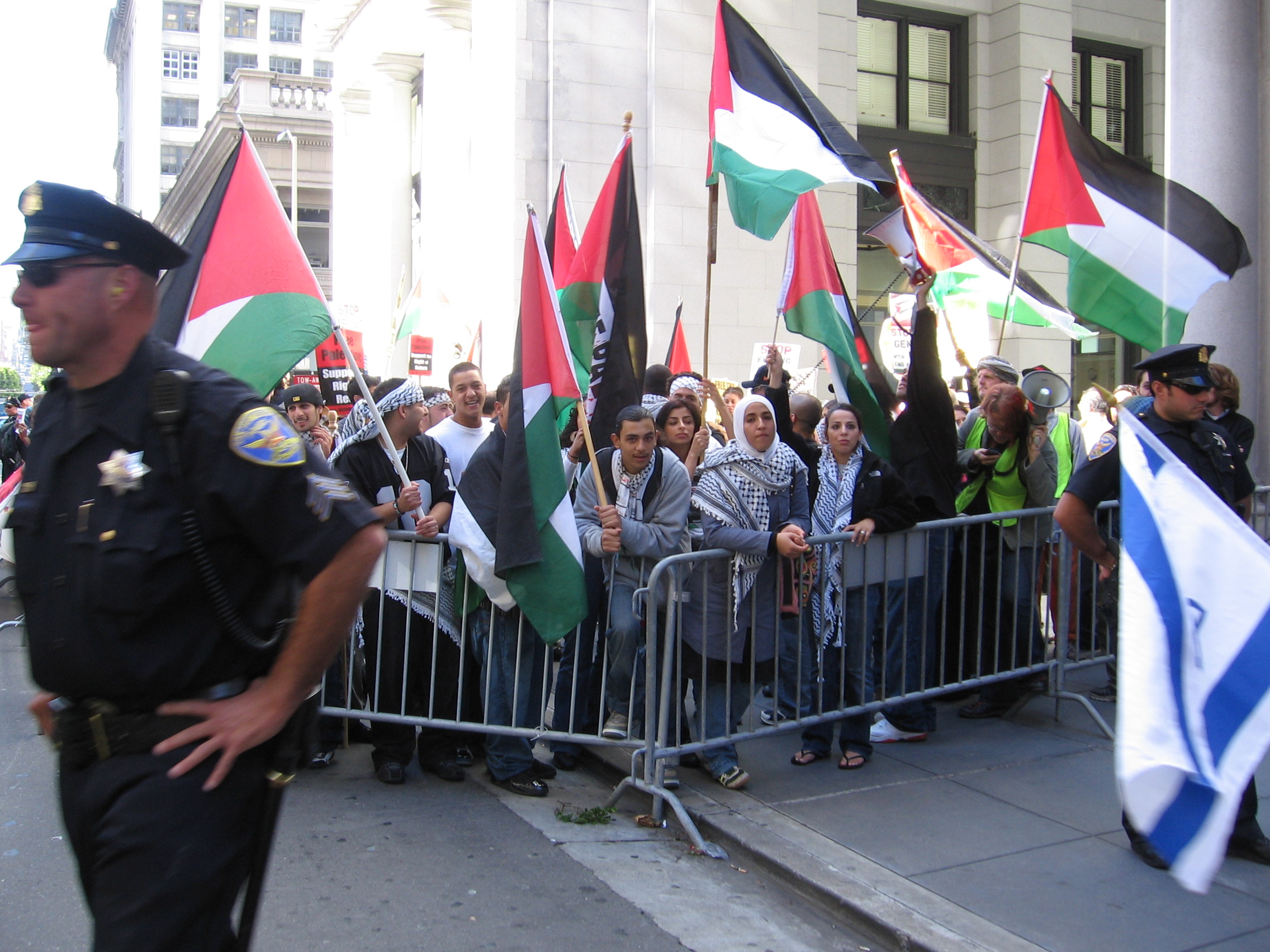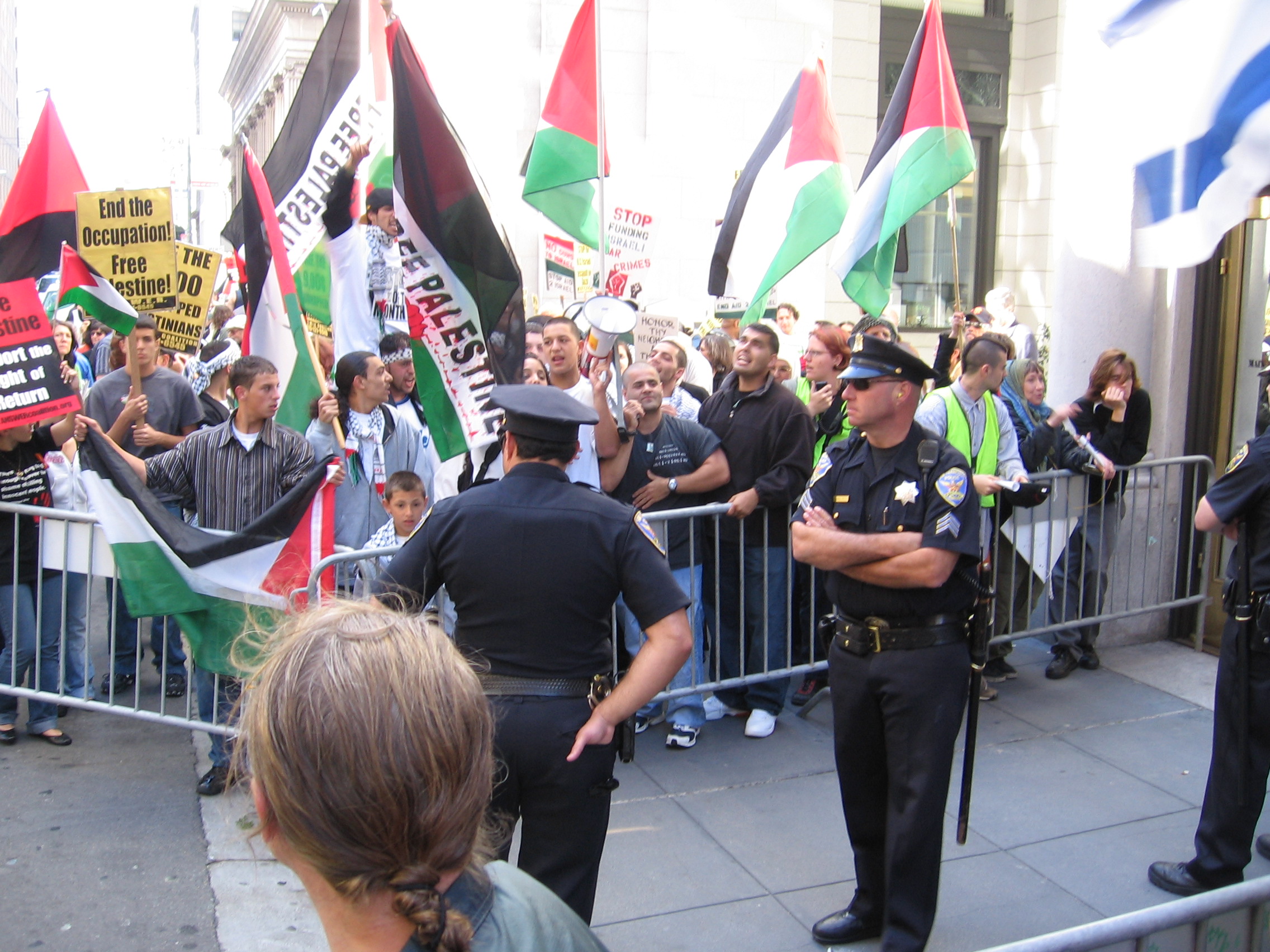 Many organizations and groups were represented, including Al Awda (the Palestinian Right to Return Coalition), Left Turn, QUIT (Queers Undermining Israeli Apartheid). ADC-SF (Arab American Anti-Discrimination Committee), SUSTAIN (Stop US Tax Aid To Israel NOW), ISM (International Solidarity Movement), Heads UP Collective, Free Palestine Alliance, JFFP (Jews For A Free Palestine), Malcolm X Grassroots Movement, SOUL (School of Unity and Liberation), ISO (International Socialist Organization), Students for Justice in Palestine, and many others.