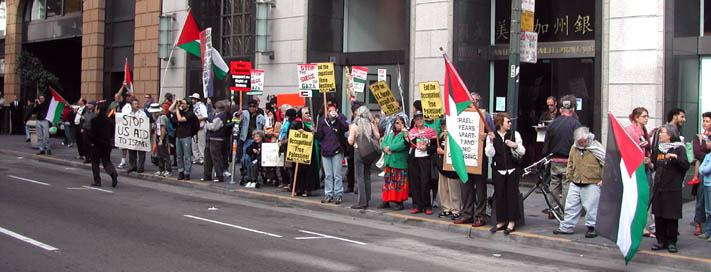 On Monday, July 3rd, 2006 the A.N.S.W.E.R. Collation sponsored an emergency demonstration at the Israeli Consulate, 456 Montgomery, San Francisco.