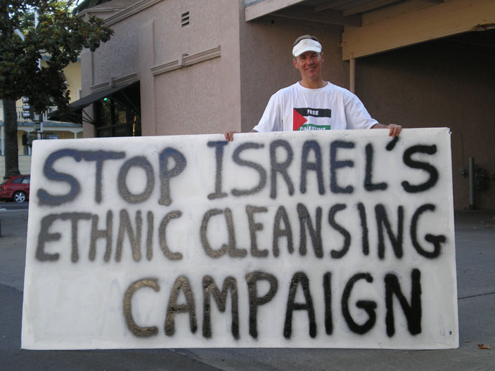 A small group of anti-war, anti-bush and Palestinian human rights activists gathered in front of the Axis Gallery in downtown Sacramento on Saturday, July 8th.
