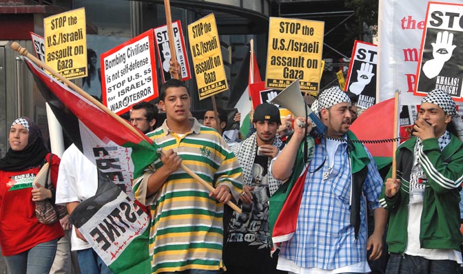 Hundreds of people protested across the street from Sen. Diane Fienstein's office against her leading the congressional cheers for the Israeli war against Lebanon.