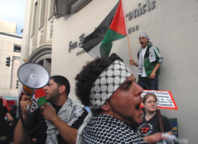 Demonstrations against the U.S. sponsored escalation of the war in the Middle East continues to gain momentum towards the mass protest against war and occupation August 12, in San Francisco, Los Angeles and in front of the White House in Washington D.C. Today's militant rally in front of the Feinstein's office turned into a march through downtown San Francisco to the San Francisco Chronicle to protest the paper's lopsided pro Israel coverage of the expanding war in Lebanon. Several people were arrested for blocking traffic at 5th and Mission.