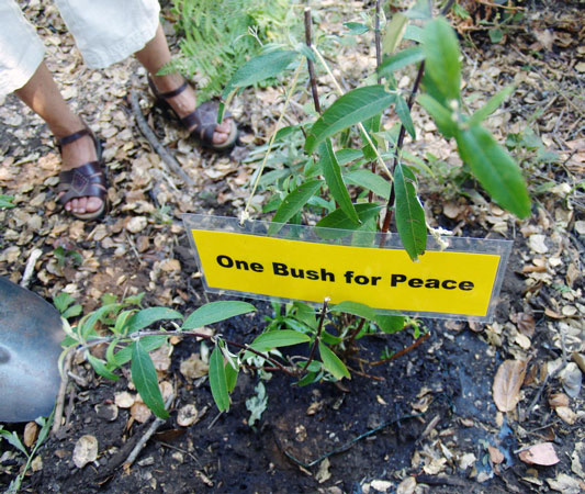 On August 9th, Nagasaki Day, 11 civilian weapons inspectors drove up Empire Grade Road and marched the last 1/2 mile to the gates of Lockheed Martin where the public road ends. The Santa Cruz Weapons Inspection Team (SCWIT) led the march marking the annihilation and devastation delivered to the people, animals and plants of Nagasaki, Japan, targeted on August 9th, 1945, by nuclear bombs far less powerful than the ones Lockheed Martin presently manufactures. The nonviolent action included the delivery of a letter from the people of Santa Cruz to Tom and Chip of Lockheed Martin suggesting they produce peaceful technologies instead of weapons like the Trident II (D5), Submarine Launched Ballistic Missiles (SLBM) armed with nuclear warheads. Paper flowers with messages to Lockheed were attached to the fence, a "peace bush" was planted and anti-nuclear songs were sung outside the gates of Lockheed Martin, the world's largest weapons contractor.