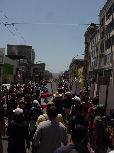 San Francisco protesters were patient, good-humored, and passionate... and knowledgeable: most were fluent with the facts regarding the long and short term history of violence and war in Palestine and Lebanon--