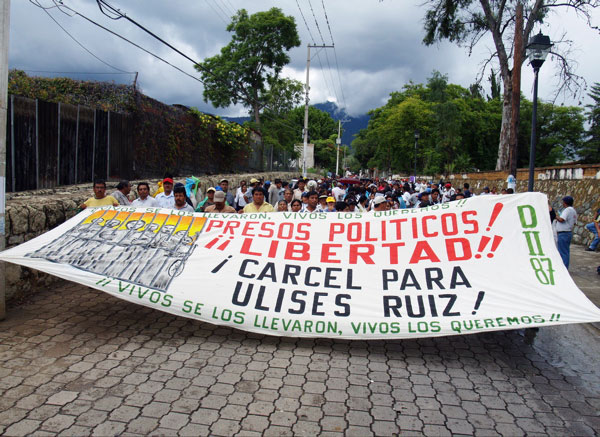 On September 1st, Oaxaca's 5th MegaMarcha took place starting in the community of San Felipe and ending at the zócalo in the center of Oaxaca City. Hundreds of thousands of people lined the streets and marched to demand the immediate departure of Ulises Ruiz Ortiz (URO), liberation for political prisoners, the cancellation of 70 government arrest warrants for people involved in the leaderless Popular Assembly of the People of Oaxaca (APPO, by its Spanish initials) movement and the desire for popular governance. San Felipe was the home to José Jiménez Colmenares, a mechanic married to a teacher, who was shot in the street while participating in a march organized by APPO on August 10th.
