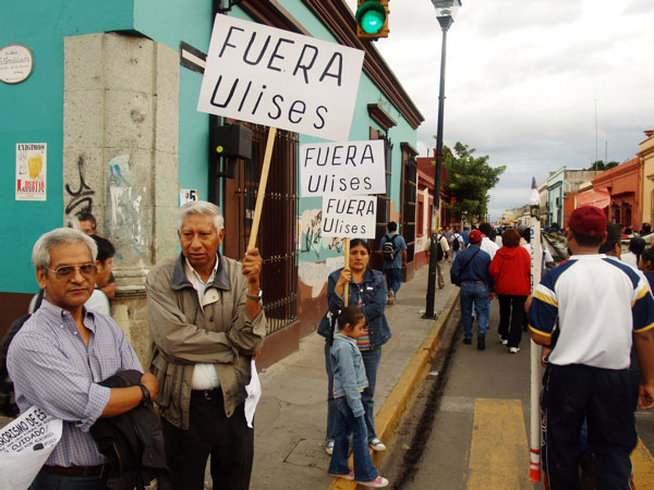 On September 1st, Oaxaca's 5th MegaMarcha took place starting in the community of San Felipe and ending at the zócalo in the center of Oaxaca City. Hundreds of thousands of people lined the streets and marched to demand the immediate departure of Ulises Ruiz Ortiz (URO), liberation for political prisoners, the cancellation of 70 government arrest warrants for people involved in the leaderless Popular Assembly of the People of Oaxaca (APPO, by its Spanish initials) movement and the desire for popular governance. San Felipe was the home to José Jiménez Colmenares, a mechanic married to a teacher, who was shot in the street while participating in a march organized by APPO on August 10th.