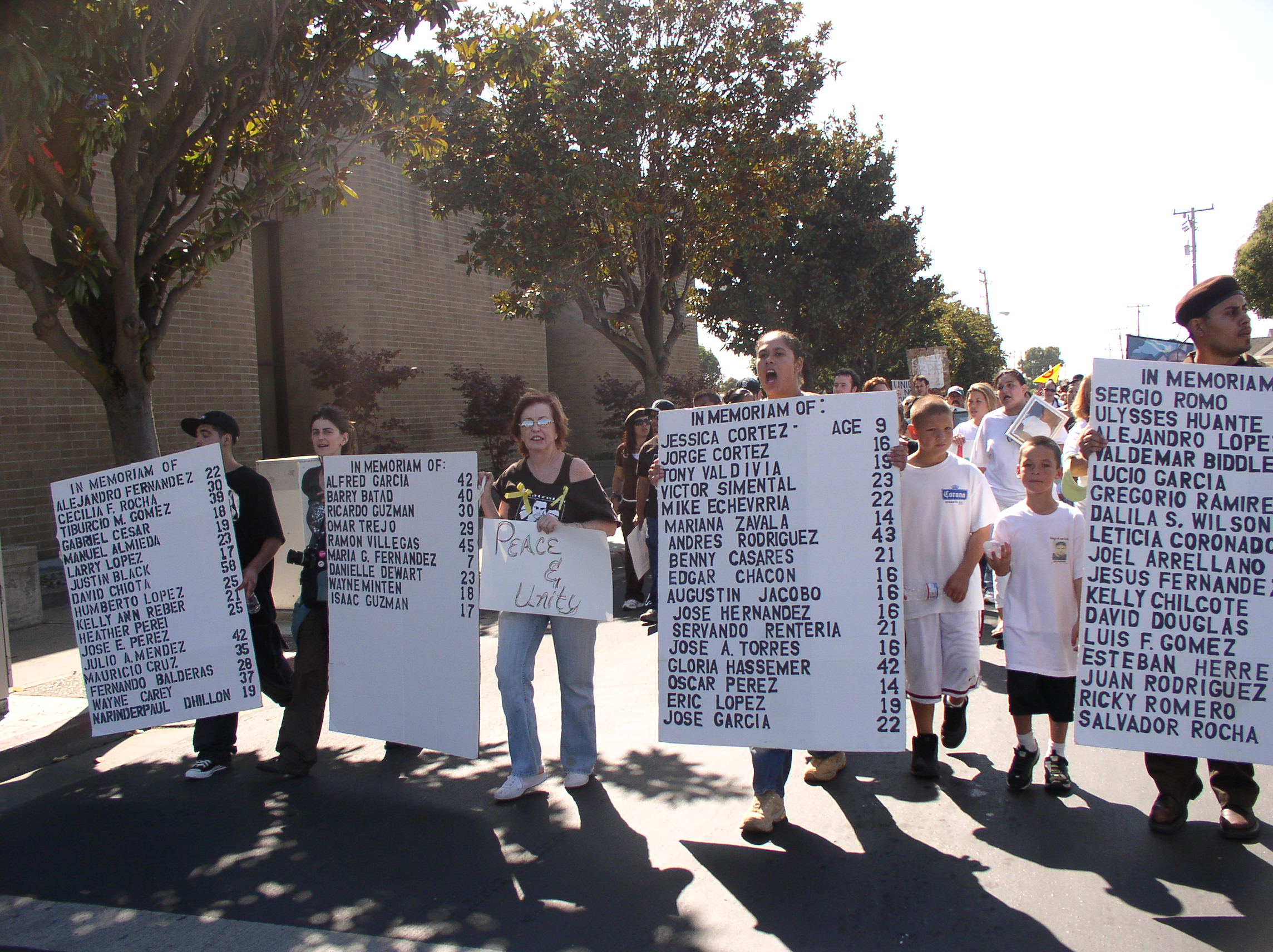 About 150 community members marched and rallied for peace at the Thirteenth Annual Peace and Unity March. The participants came together to honor those who have died in violence, listen to family members of community members who had been murdered, and pray, bless, rally, and support el pueblo de Watsonville with peace. Also, families who have lost a member to violence, set-up memorials, or altares,to remember them and for the community to see.