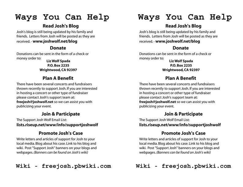 Wolf, for all of the people he's helped through his activist brand of journalism, seems to find himself very alone at this point in his case. Many newspapers, most of which are owned by conservative publishers, haven't reported on Wolf's plight and a few have even tried to paint him in a bad light --- as if attacking a "left" reporter proves their patriotism and guarantees them job security in an ever-increasing world of independent and internet-based media.