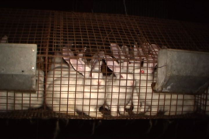 But the exploitation doesn’t end there. A 2002 rabbit industry report by the USDA suggests that 8.3 million rabbits are raised and slaughtered each year in this country to be served in restaurants and sold in grocery stores. Recent media coverage asserts rabbit meat is a growing U.S. industry, especially in southern states. With members in Alabama, Mississippi, and Tennessee, the Tri-State Rabbit Growers Association was formed in 2003, and its goal is to become an economic force in the food industry. “It’s alarming to see the growth of rabbit meat production in the South, where heavy development of chicken meat currently exists,” says Christine Morrissey, whose organization East Bay Animal Advocates (EBAA) investigates the rabbit-meat industry. “Like chicken, rabbit meat is gaining popularity as an alternative to red meat.”