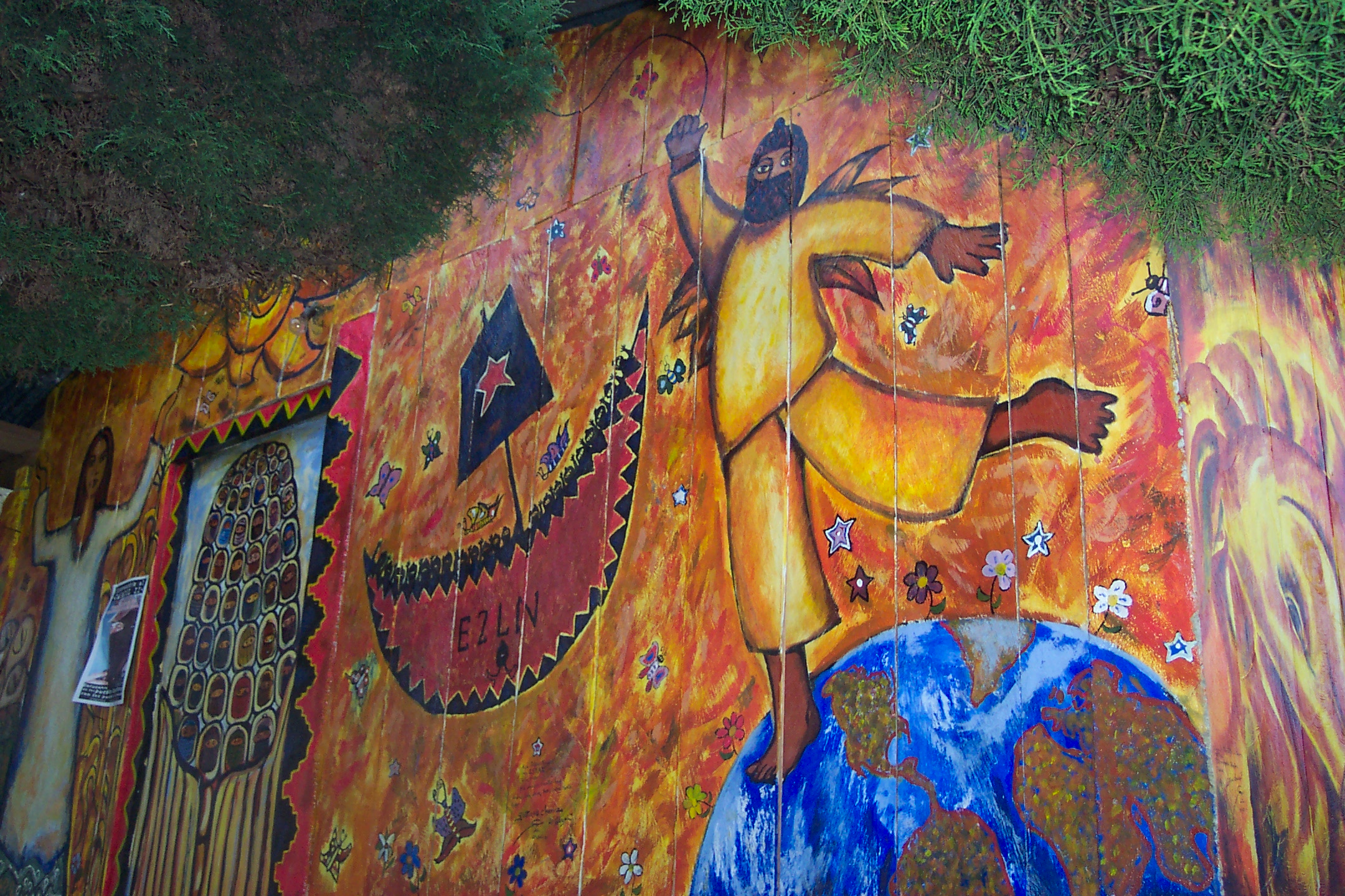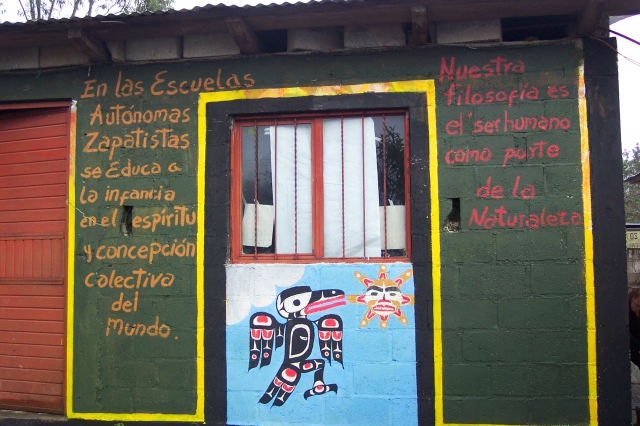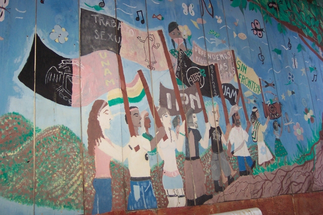The walls of Oventic are decorated with beautiful murals dedicated to agriculture, education, the liberation of women, international solidarity, traditional storytelling (oral tradition), history...