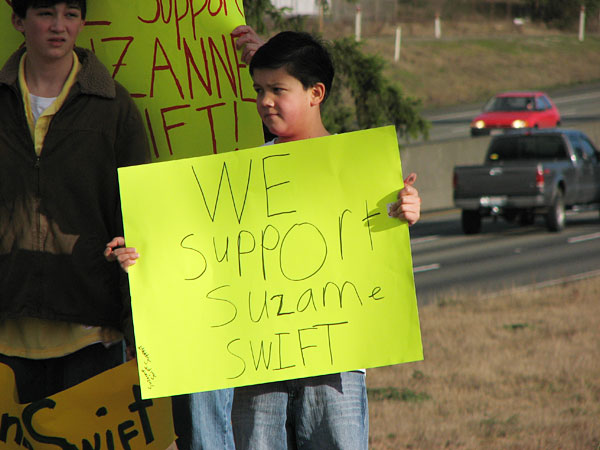 FORT LEWIS, WA (January 3, 2007) – Supporters of Spc. Suzanne Swift rallied outside Fort Lewis, Washington this morning to welcome the news that Swift had been released from military prison.