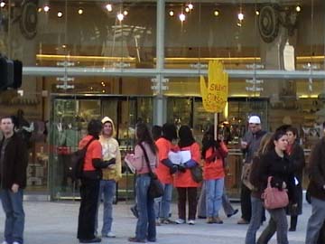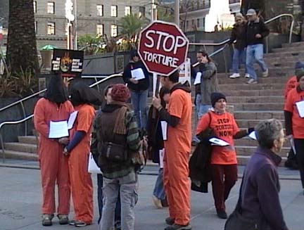 The January 13 action was one of hundreds around the world to mark the fifth anniversary of the opening of the special military prison at Guantanamo Bay. Over 400 men and boys remain imprisoned at Guantanamo, many for almost five years. None have ever been put on trial. Very few have been charged with any crime. The action also highlighted torture in U.S. prisons.