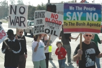 The organizers will provide signs for the march, but group banners and individual signs are also encouraged. Speakers include Dolores Huerta of the UFW, David Swanson of www.afterdowningstreet.org , and (tentatively) Congresswoman Lynn Woolsey of the 6th Congressional District. Music will include Lonesome Jem and also Green Machine.
