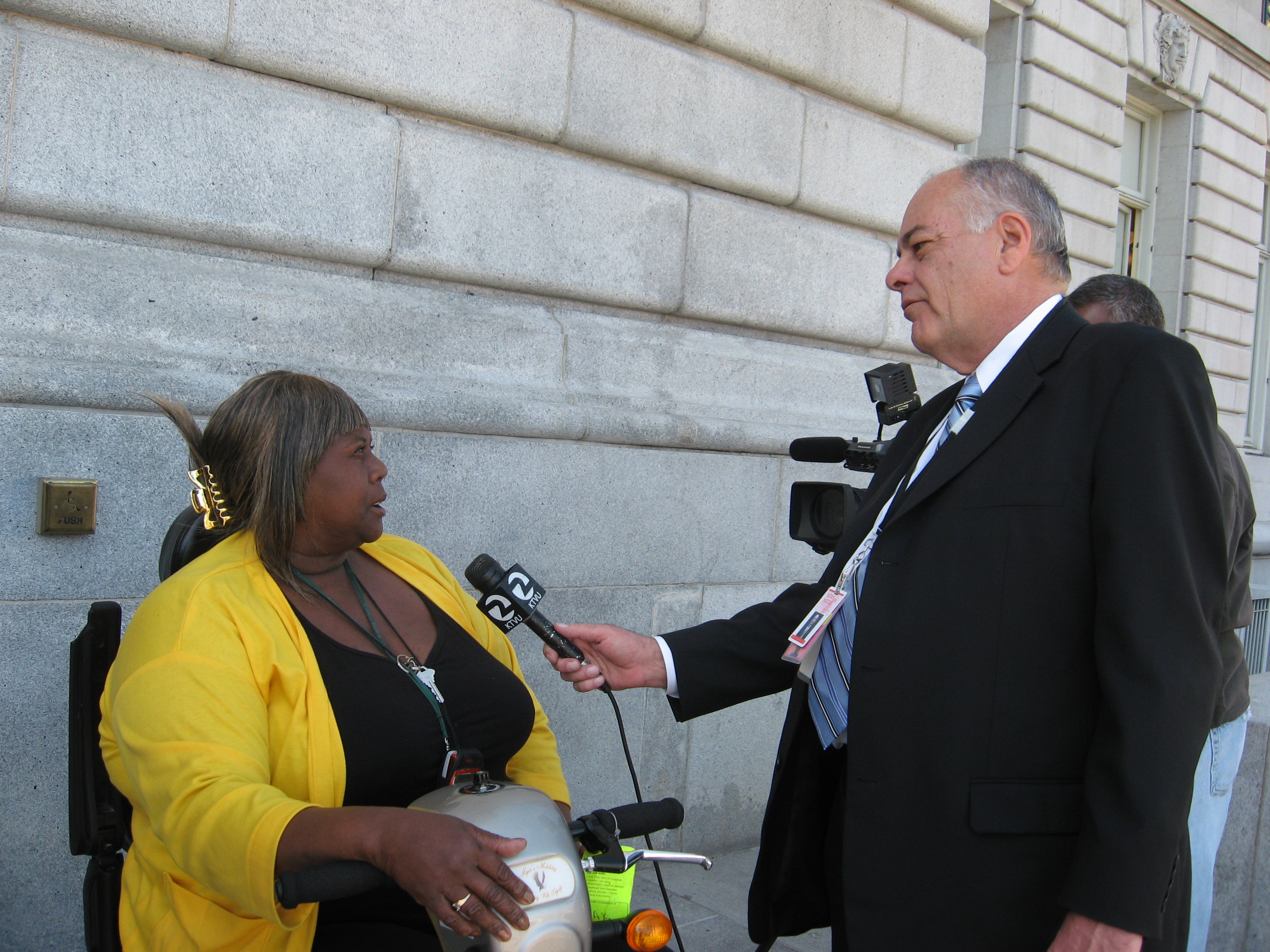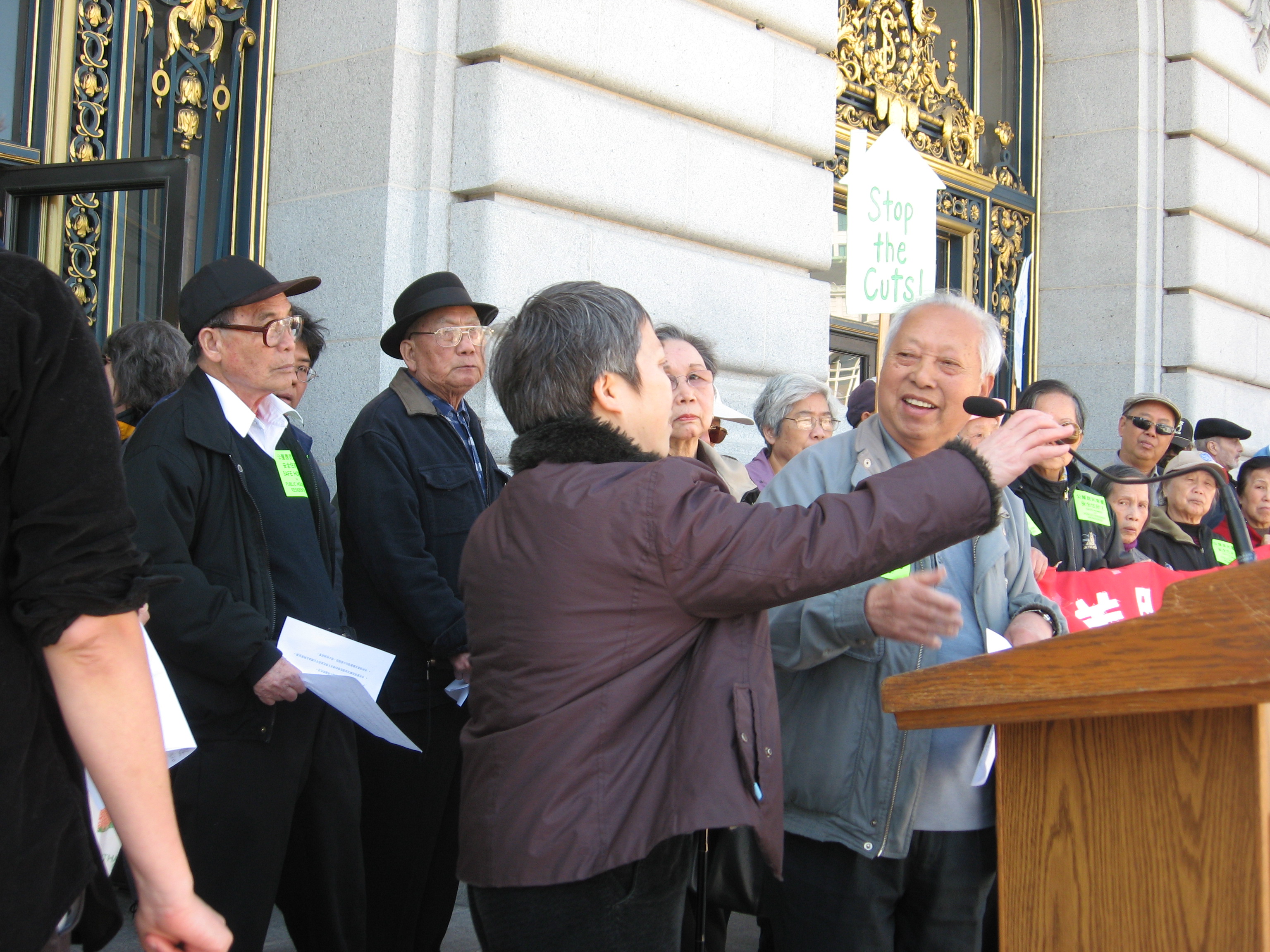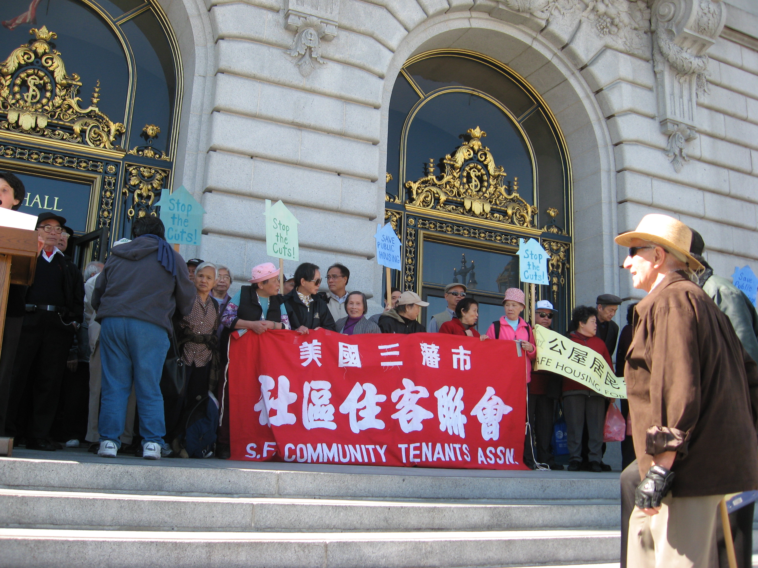 On March 8th, the SF Housing Rights Committee with employee Sara Shortt and several other community based groups, including members of the Harvey Milk LGBT Democratic Club, held a press conference on the steps of City Hall to oppose the latest HUD cuts to the City’s Public Housing Security. These cuts have been made to senior and disabled buildings only, the most vulnerable of Public Housing residents. Supervisor Chris Daly also called on the Budget Committee to review the SF Housing Authority’s finances. For a complete story on the subject, see the BeyondChron story at http://beyondchron.org/news/index.php?itemid=4273#more .
