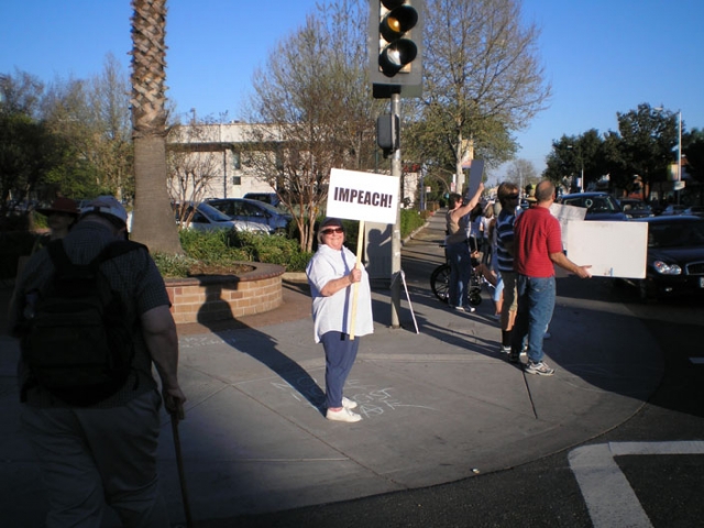 Over 100 concerned citizens gathered at 16th & Broadway in Sacramento on March 17th to mark the 4th anniversary of the beginning of the Iraq War and to express their outrage over Congress's failure to stop it.