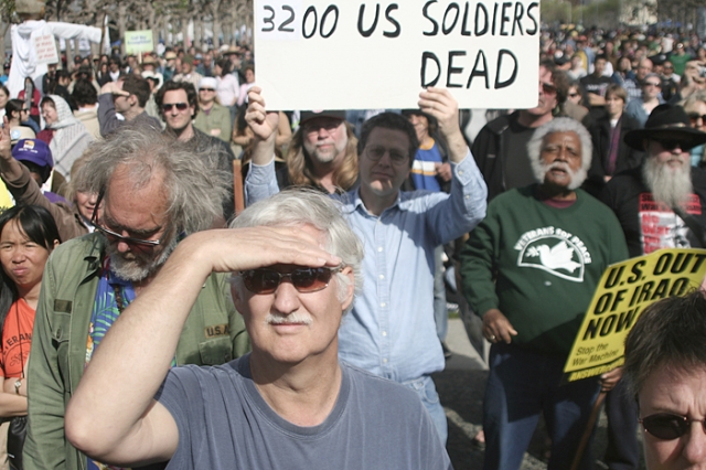 There were peace marchers with the flag.