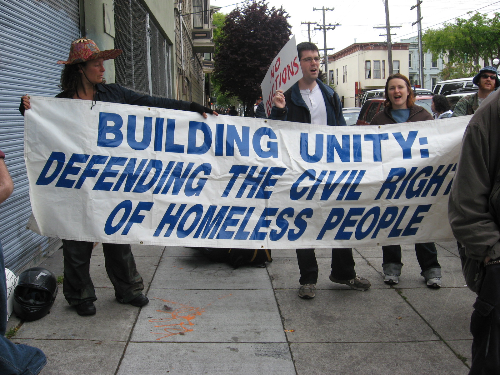 The battlecry was “If they are going to take our homes, and especially if they are going to allow them to sit empty after taking them, then we are going to take them back!” The point was to call the City’s attention to these empty Ellised buildings, and hopefully our Supervisors can find a way to reclaim them. How can we allow these things to happen at one end, and then claim to care about the homeless problem at the other?