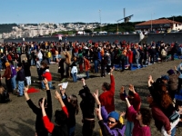 In San Francisco, Beach Impeach Project #2 took place. Thousands of people gathered at Ocean Beach for a "Bodies Count" action to spell out the words "IMPEACH NOW!" in 100 foot-tall letters. CodePink later lead a 12pm march up to Nancy Pelosi's house- including a stop off at Dianne Feinstein's along the way.