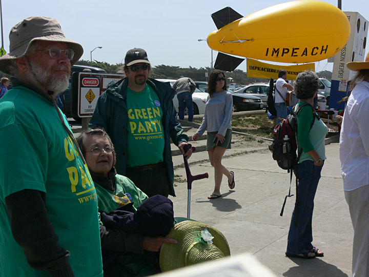 Carol Brouillet from the Northern California 9/11 Truth Alliance, said "The best hope for our country and the world is the impeachment of a regime which has hijacked our country and is trying to dominate the world. Only by stopping them and reversing their poliicies, can we redeem ourselves in the eyes of the world. Truth, courage, humor, community and a passion for peace and justice unites all of us, but I think the sheer fun and joy of the beach made the "Beach Impeach" irresistible to activists, like the Northern California 9/11 Truth Alliance."