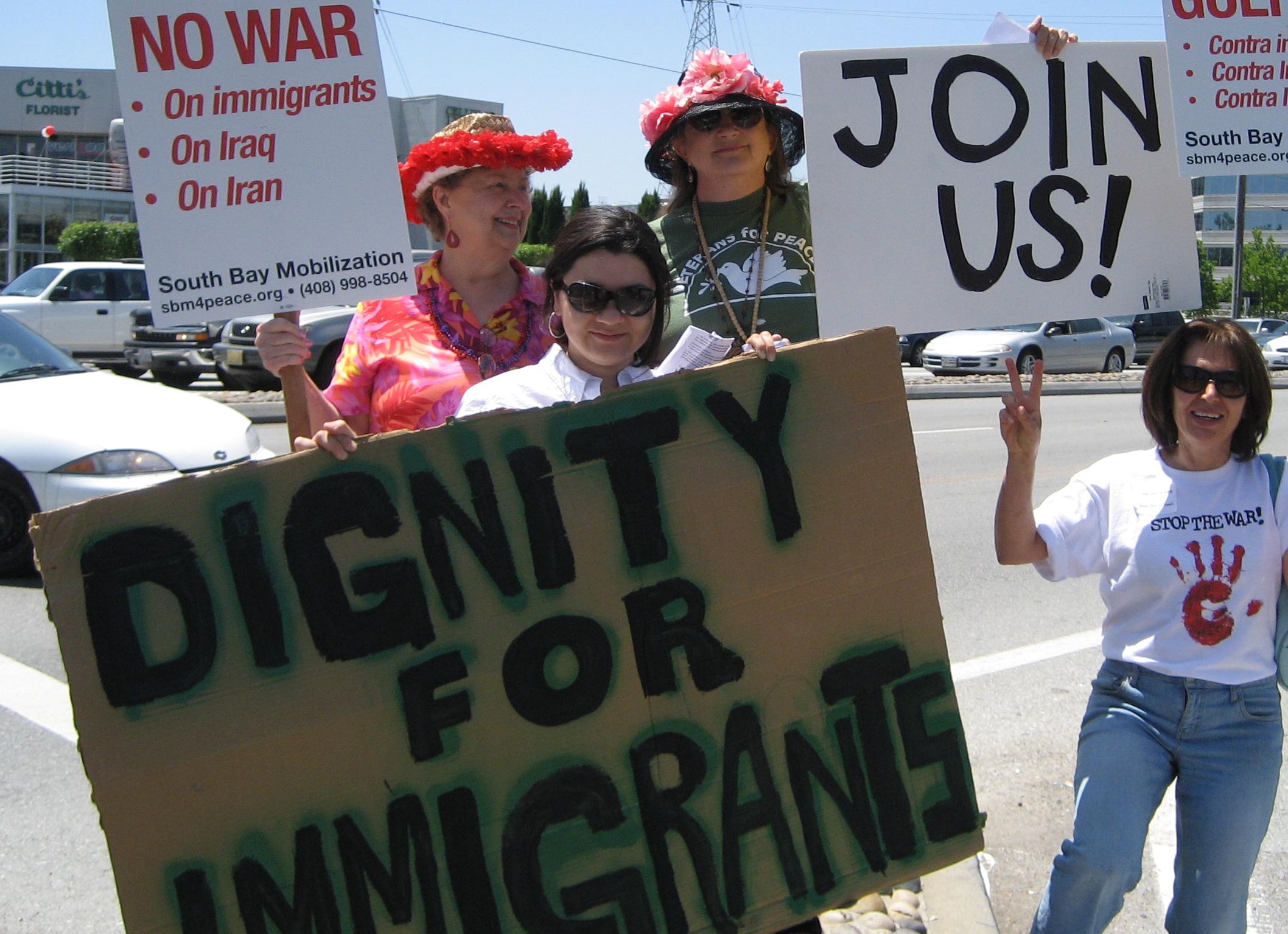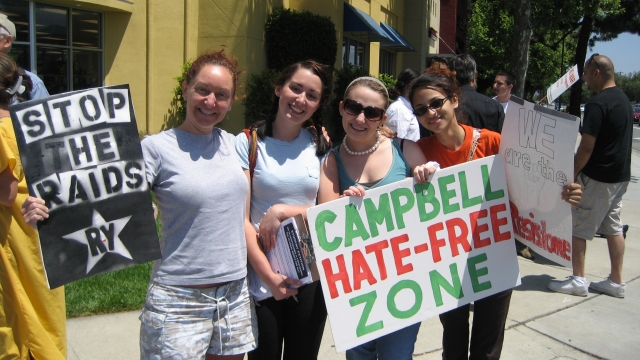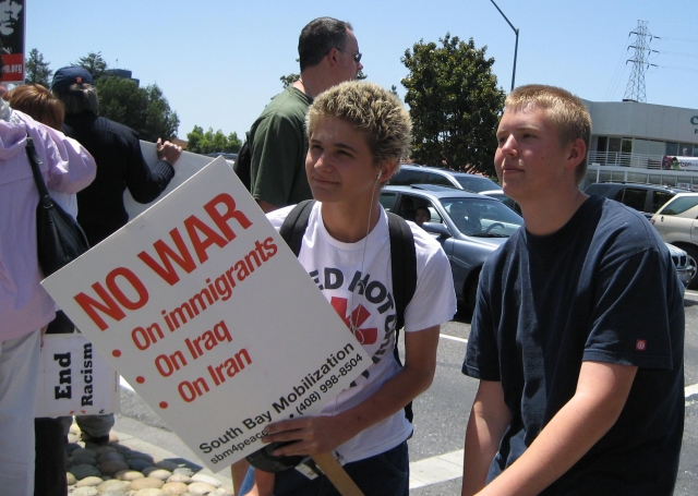 Pro-immigrant groups represented included: deBug (minority youth activist media group), National Lawyers Guild, Veterans for Peace, Maiz (Latino youth group), Lucha (Community College Latinos), Raging Grannies of San Jose, Raging Grannies Action League, South Bay Mobilization, Socialism and Liberation Party, Green Party, San Jose State Youth for Change, more...