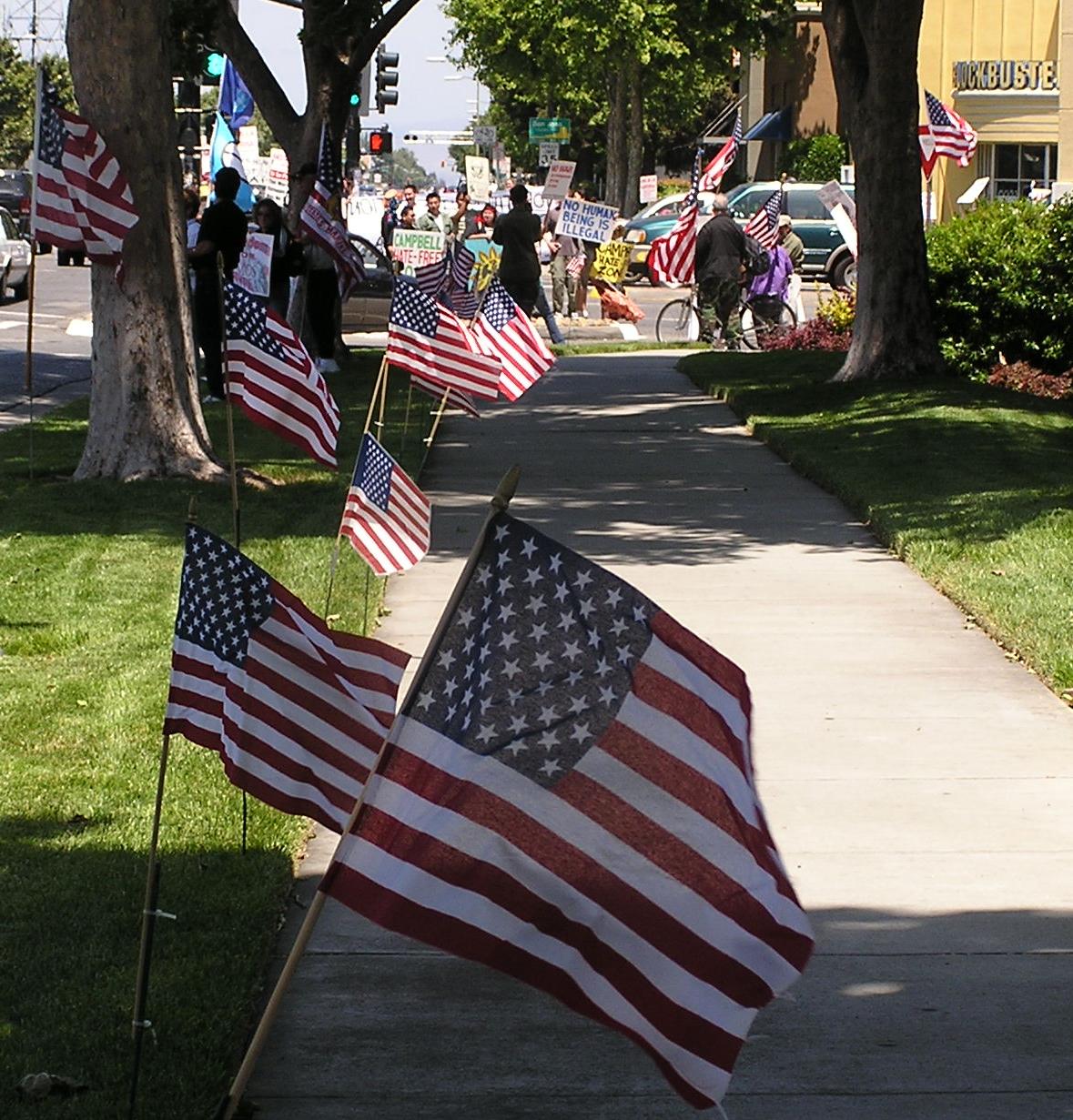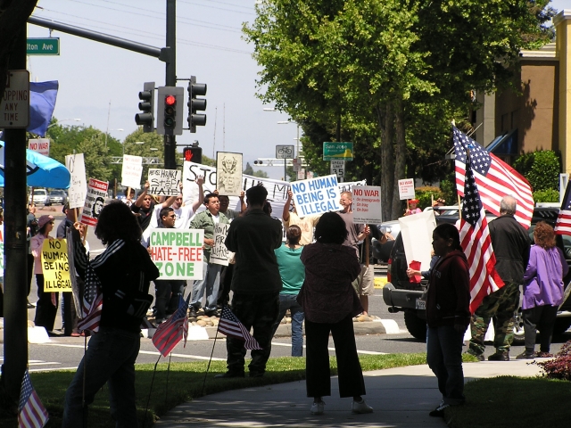 A handful of Minutemen faced dozens of pro-immigrant demonstrators May 12, 2007 in Campbell, CA