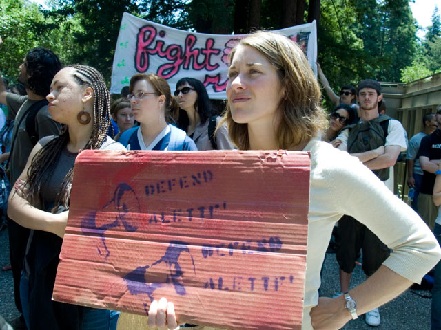 The May 24th, 2007 rally to defend Alette was an impressive demonstration supported by students of color, UCSC's Queer Network, anti-war and labor solidarity activists, AFSCME workers, graduate students, alumni and social justice activists from UC Davis and UC Santa Barbara. The UC Activist Defense Committee plans to kick Alette's defense campaign into high gear with ongoing actions to defend Alette, fire Blumenthal and fight for social justice within the University of California.