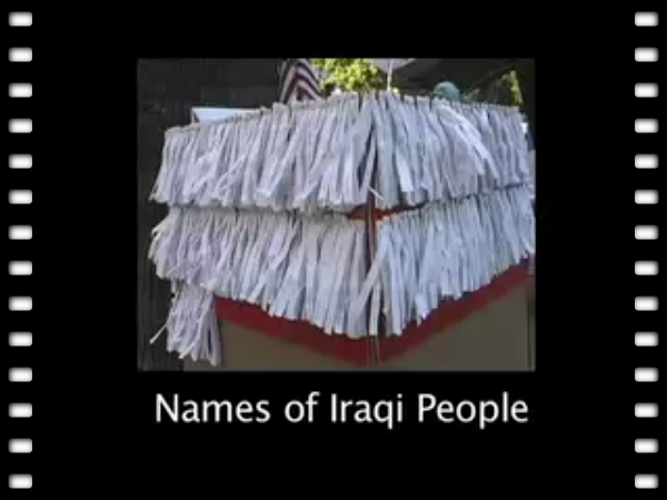An Iraq War vet is walking around the California State Capitol, one lap for each dead soldier from California. Others join him carrying names of dead Iraqis and other US military who have been killed. 3:02min.