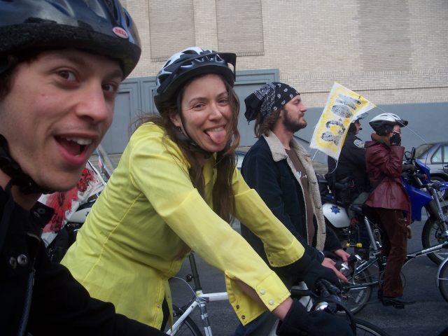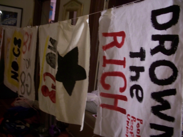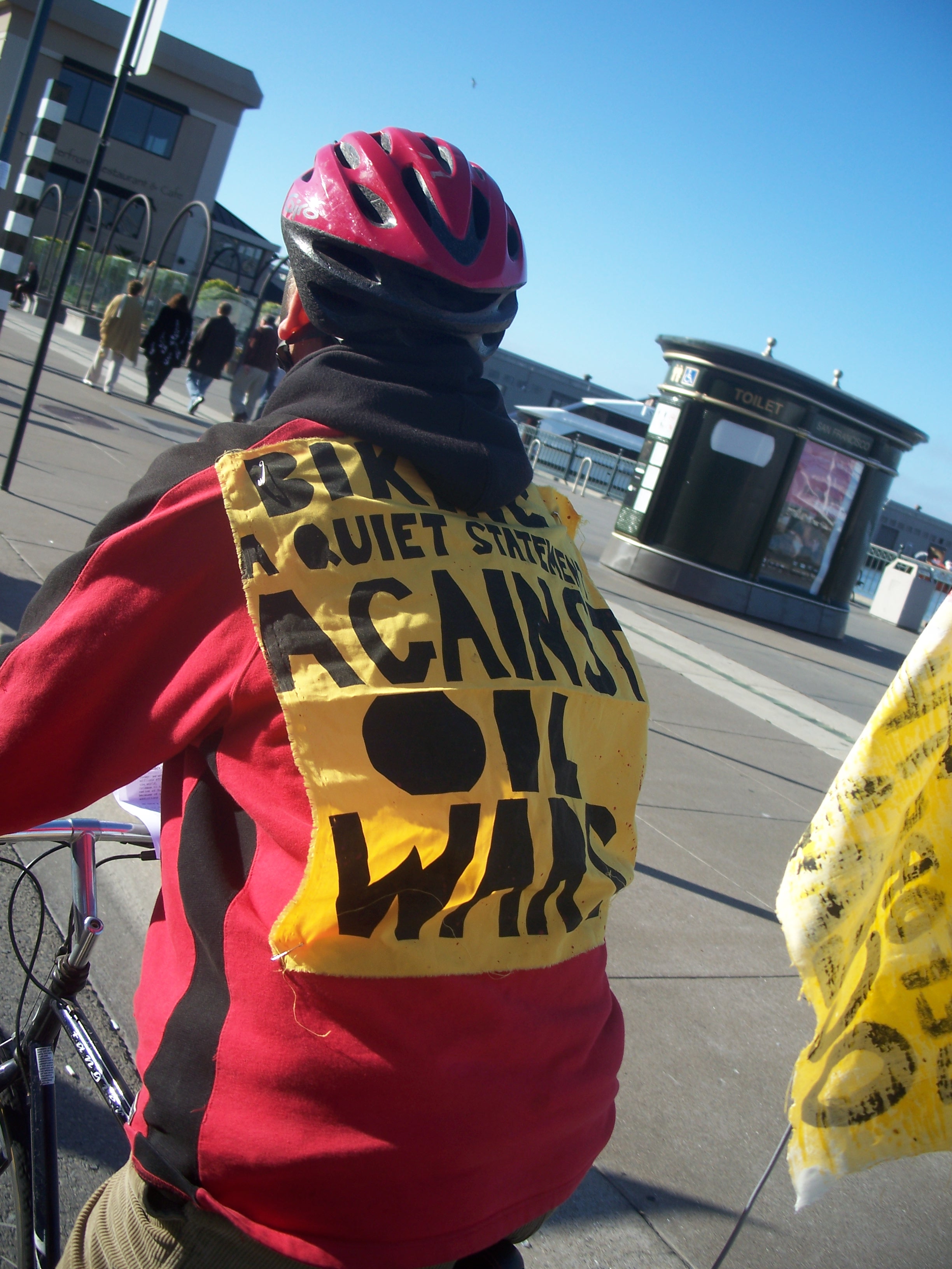 a crew of approximately 60 people rode through san fran with bright red and yellow flags that said slogans like "V8 not G8", "flood the streets before the ocean does", and "climate justice". more video, audio, and print to come