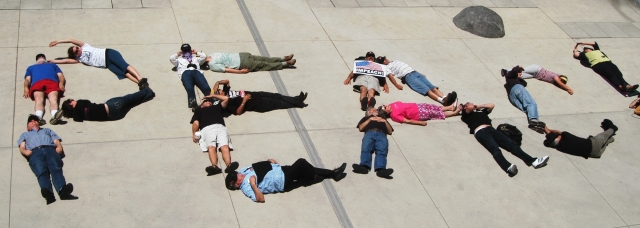 Silicon Valley Impeachment Coalition organizes impeach "spell-in" where people laid down in San Jose City Hall Plaza to spell IMPEACH with their bodies on Saturday, June 9, 2007.