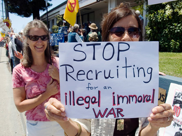 On June 26, protestors converged on the Military Recruitment Center in Capitola "to end the war in Iraq now, and to work for a future of peace and justice for all beings, in all places." The Capitola recruiting offices for the Army, Air Force, Marines and Navy are staffed by pompous and deceitful representatives of the the world's largest and wealthiest terrorist organization. The recruiters seem to believe the lies and exaggerations they repeat ad nauseum.
