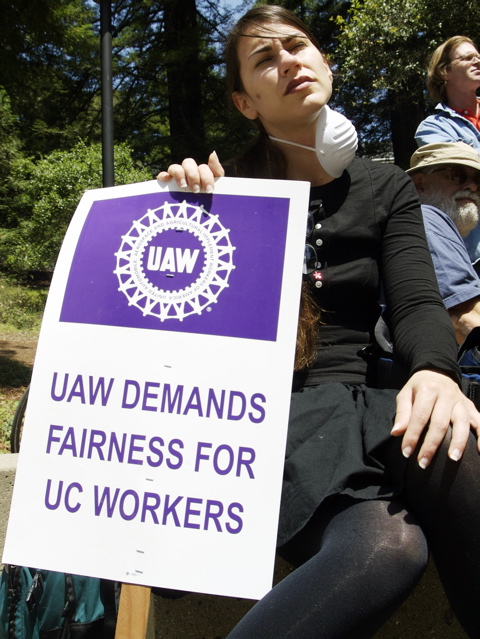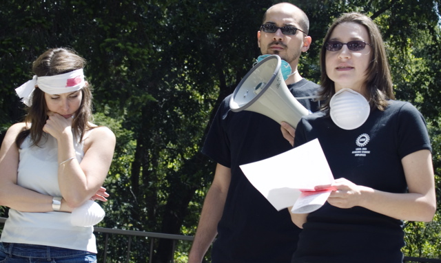 On May 17th, graduate students, who are also teaching assistants at UC Santa Cruz, held a rally and sick-in, along with other employees, to let the University of California know that we are sick of attacks on our health care. Hours after the demonstration at Kerr Hall, Lisa Sloan, Dean of Graduate Studies, announced that next year's Graduate Student Health Insurance Plan (GSHIP) will maintain the current level of coverage. This victory was achieved in combination with an email campaign to UCSC's Executive Vice Chancellor (EVC) David Kliger and other efforts backed by UAW Members for Quality Education and Democracy (UAW-QUAD) at UCSC.