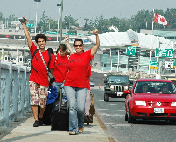 The Venceremos Brigade returned from Cuba yesterday (Saturday, July 28, 2007), marching across the Peace Bridge into Buffalo New York where they were warmly greeted by supporters.
