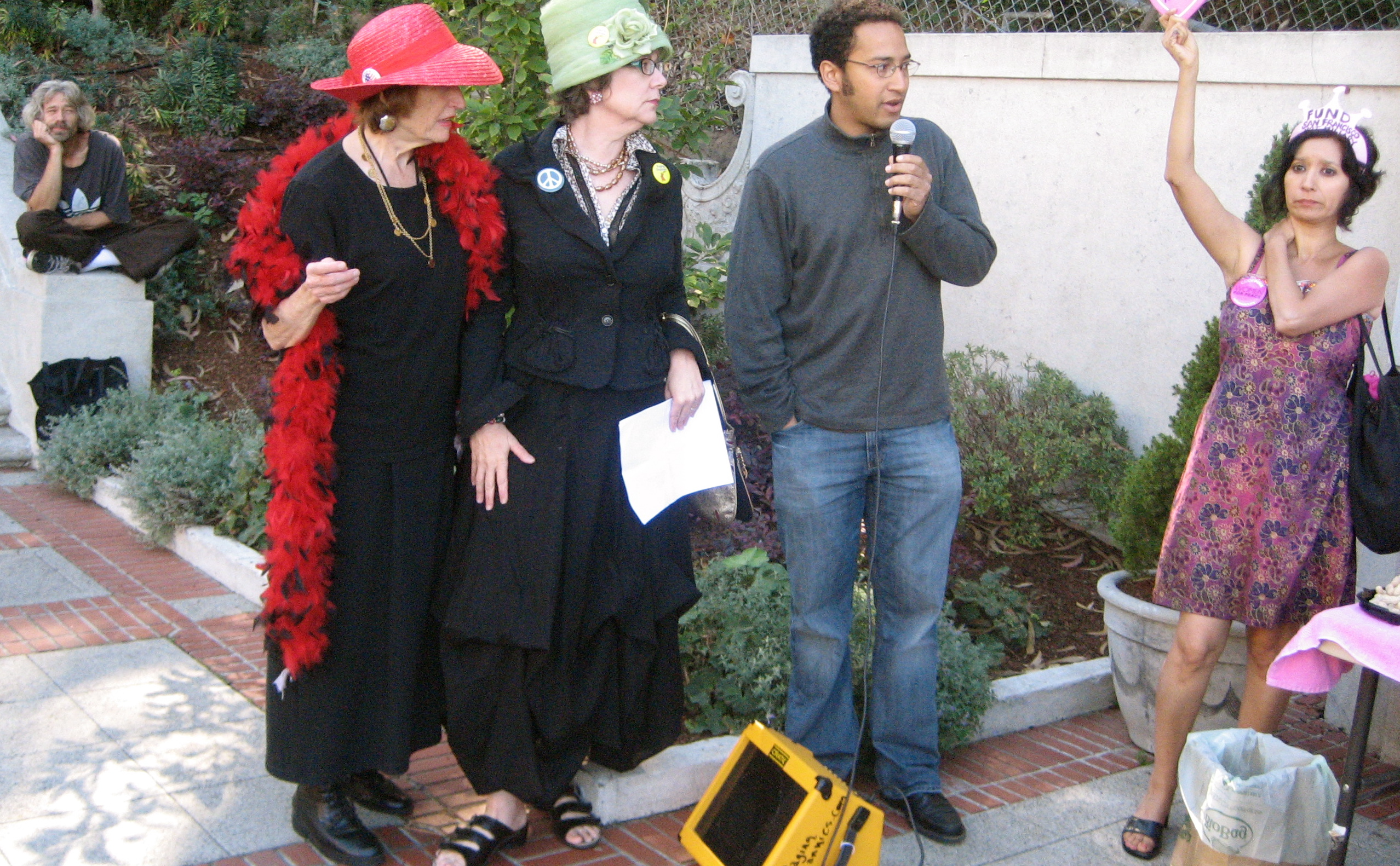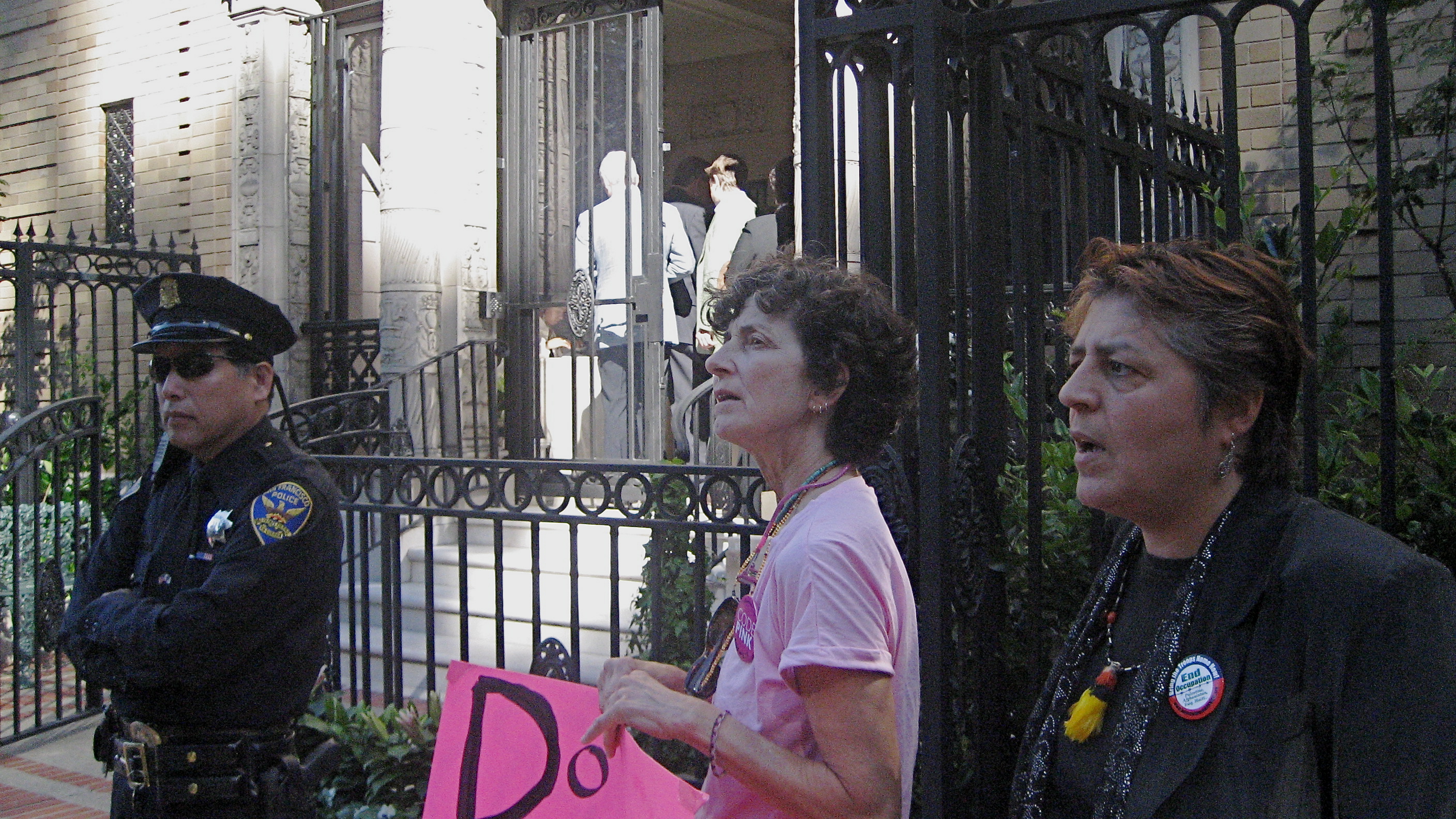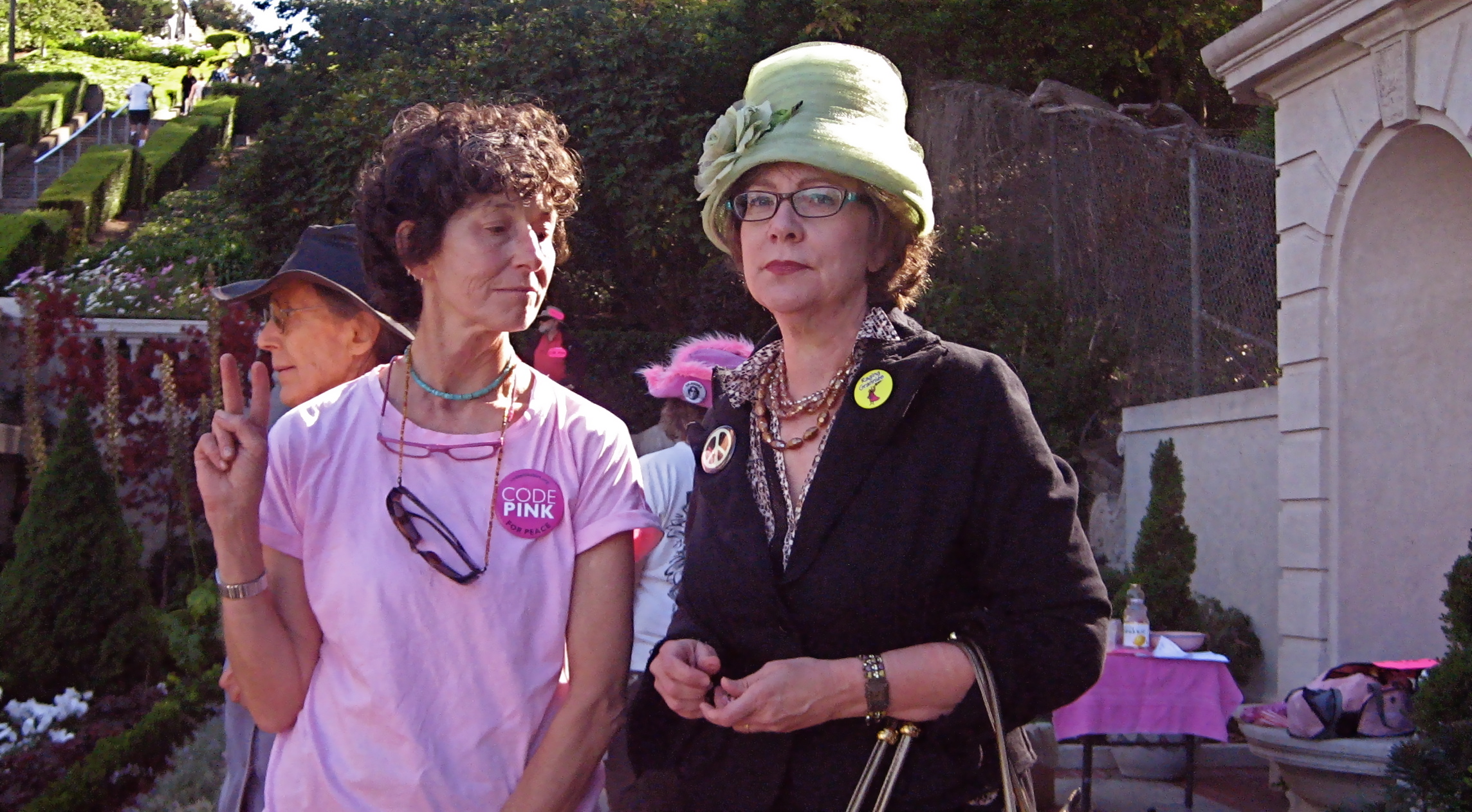 CODEPINK Women for Peace, with help from co-sponsors the Raging Grannies Action League and Education Not Incarceration, led a coalition of community and peace groups in a rally outside of Senator Dianne Feinstein's Pacific Heights mansion, the site of a Presidential fundraiser for Democratic hopeful Senator Hillary Clinton on Sunday September 30. The coalition targeted the Senators who have supported the funding of the Iraq war and agreed to sanctions on Iran.